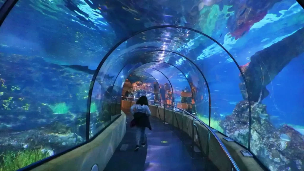 El principal atractivo del acuario es su impresionante túnel de 80 metros, donde te sentirás como si caminaras bajo el mar. ¡No te asustes si un tiburón pasa justo por encima de tu cabeza!